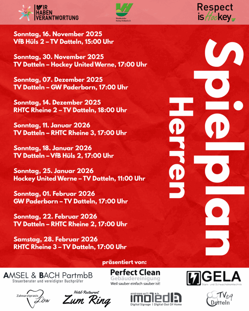 Unsere Herren spielen in der Hallensaison 2025/2026 in der 3. Verbandsliga im Bezirk Westfalen des Westdeutschen Hockeyverband e.V.
